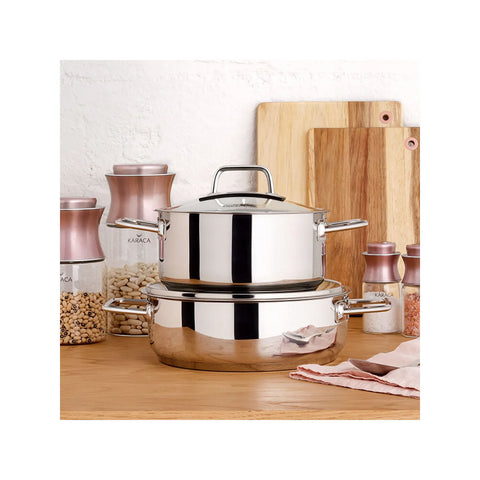 Karaca Galaxy 28 cm 4,5 L stalen kookpan met brede bodem voor auberginegerechten