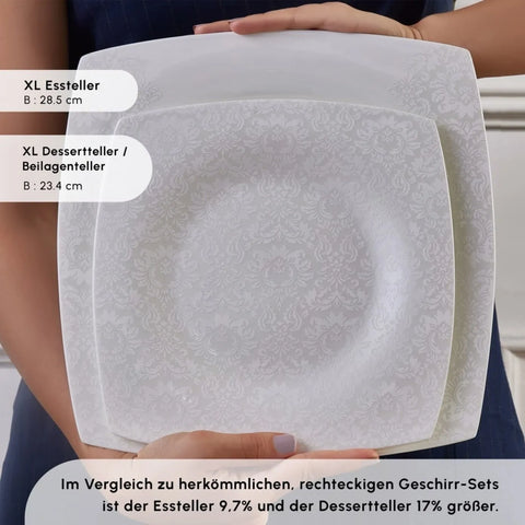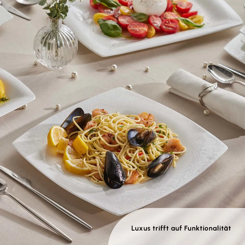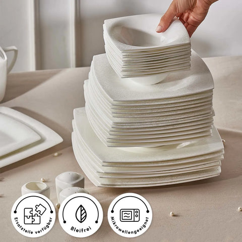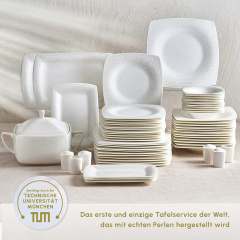 Karaca Fine Pearl Helen 62-delig vierkant tafelservies voor 12 personen
