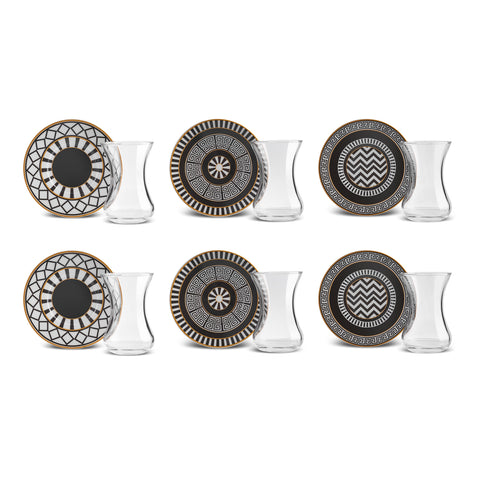 Karaca Helenstik 12-delige Theeglas Set, Zwart Goud