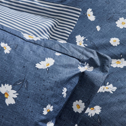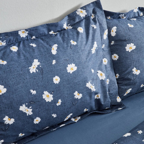 Karaca Home Daisy 100% katoenen eenpersoons dekbedovertrekset indigo