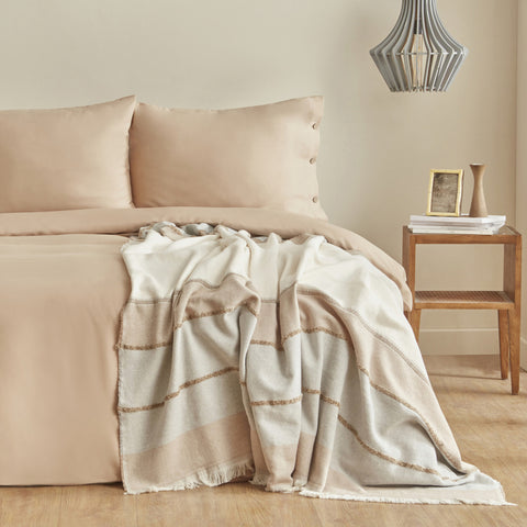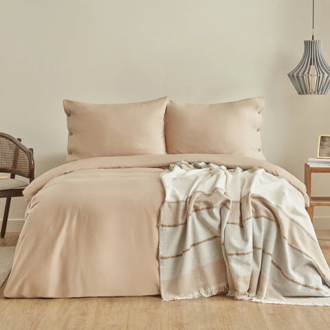 Karaca Home Nevada Tweepersoons Krep Dekbedovertrek Jakar Sprei Set Beige
