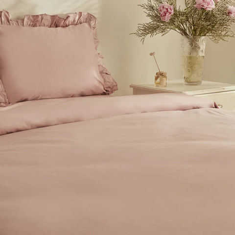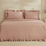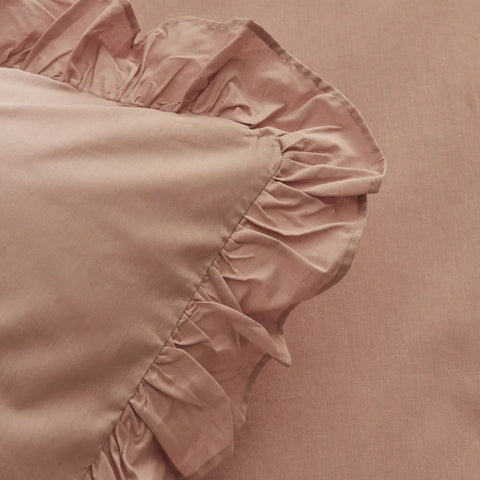 Karaca Home Pure Ruffle 100% Katoenen Tweepersoons Dekbedovertrek Set Poeder